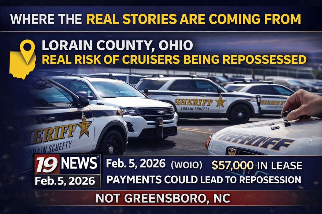 However, that Lorain County situation is in Ohio — not Greensboro, North Carolina — and there is no authoritative local reporting linking the same circumstances to Greensboro’s police fleet.