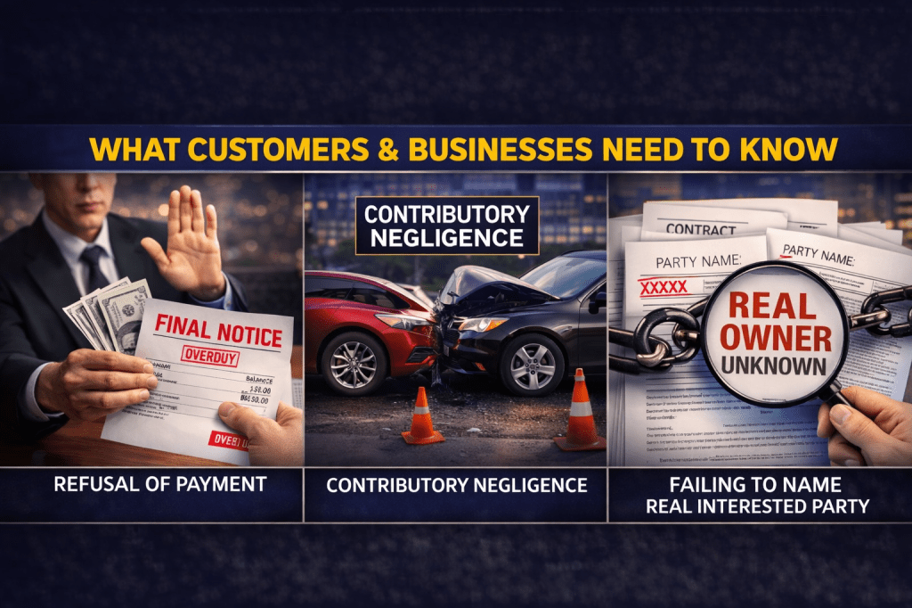 A business refuses payment or blocks compliance An agent or employee escalates improperly The wrong party is named or identified The company’s own conduct contributes to the dispute Liability attaches automatically under agency law Defense costs rise Insurers push for settlement Reputational harm follows