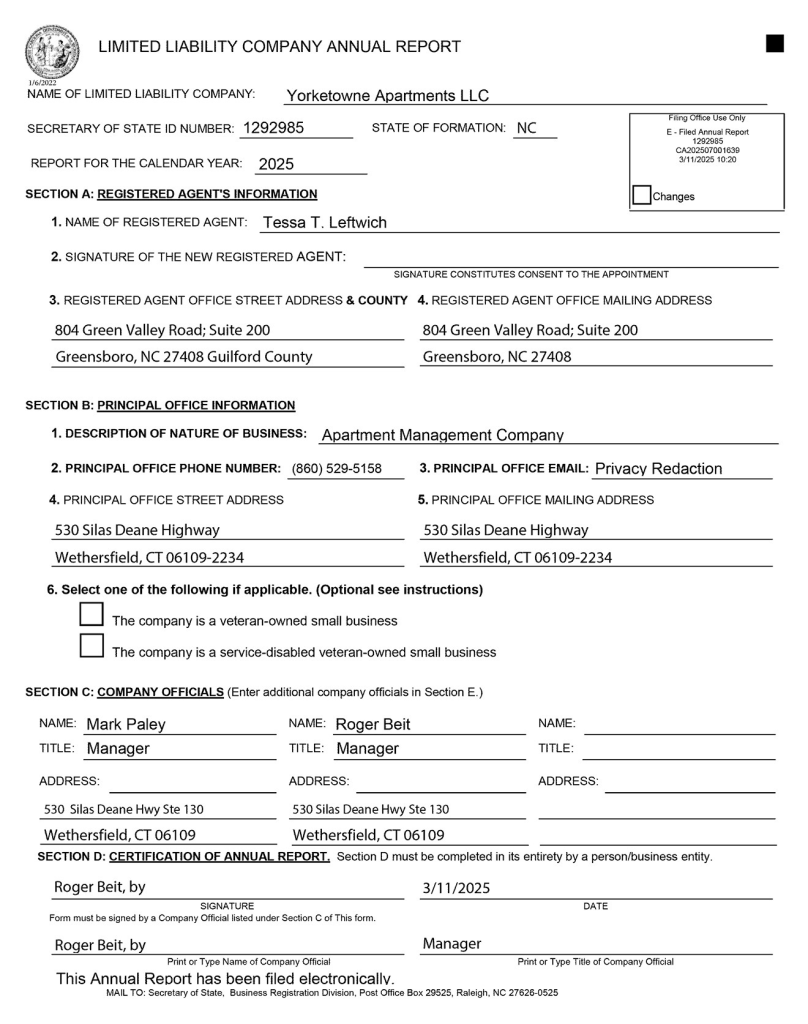 - Property Management [Manages YorkeTowne Apartments LLC]